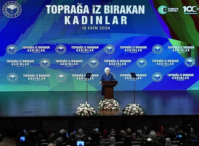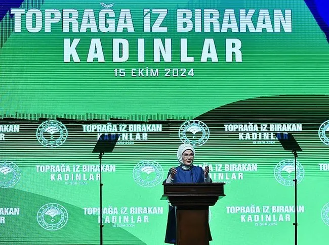 Emine Erdoğan, Tarım ve Orman Bakanlığı tarafından 15 Ekim Dünya Kadın Çiftçiler Günü nedeniyle Cumhurbaşkanlığı Millet Kütüphanesi’nde düzenlenen, ‘Toprağa İz Bırakan Kadınlar’ programına katıldı. Emine Erdoğan, Türkiye’nin dört bir yanından kadın çiftçilerle bir arada olmaktan duyduğu mutluluğu dile getirerek, Anadolu topraklarının bereketine dikkati çekti. Avrupa kıtasının tamamında 13 bin çeşit bitki türü varken, Türkiye’de 12 bin çeşit bitki yetiştiğine işaret eden Emine Erdoğan, “Coğrafyamızın bu zenginliği bir ayrıcalık olduğu kadar, onu korumak, hepimiz için mühim bir sorumluluk” dedi.